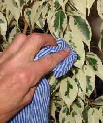 the leaves with a damp cloth or tissue to remove any dust and